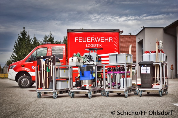Ohlsdorf (Österreich) – Als Nachfolger für ein LAST (Lastentransportfahrzeug) beschaffte die oberösterreichische FF Ohlsdorf (Bezirk Gmunden) ein KRF-L (Kleinrüstfahrzeug Logistik). Es basiert auf einem allradgetriebenen Mercedes-Benz Sprinter 519 CDI 4×4 (190 PS/140 kW) mit Doppelkabine für eine Staffel (1/5). Die zulässige Gesamtmasse beträgt 5.500 Kilogramm.