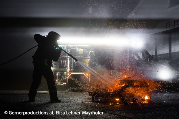 Mit dem Hochdrucklöschsystem stehen sofort 200 Liter Löschwasser zur Verfügung, die mit 38 l/min bei 100 bar ausgebracht werden können. (Bild: Gernerproductions.at, Elisa Lehner-Mayrhofer)