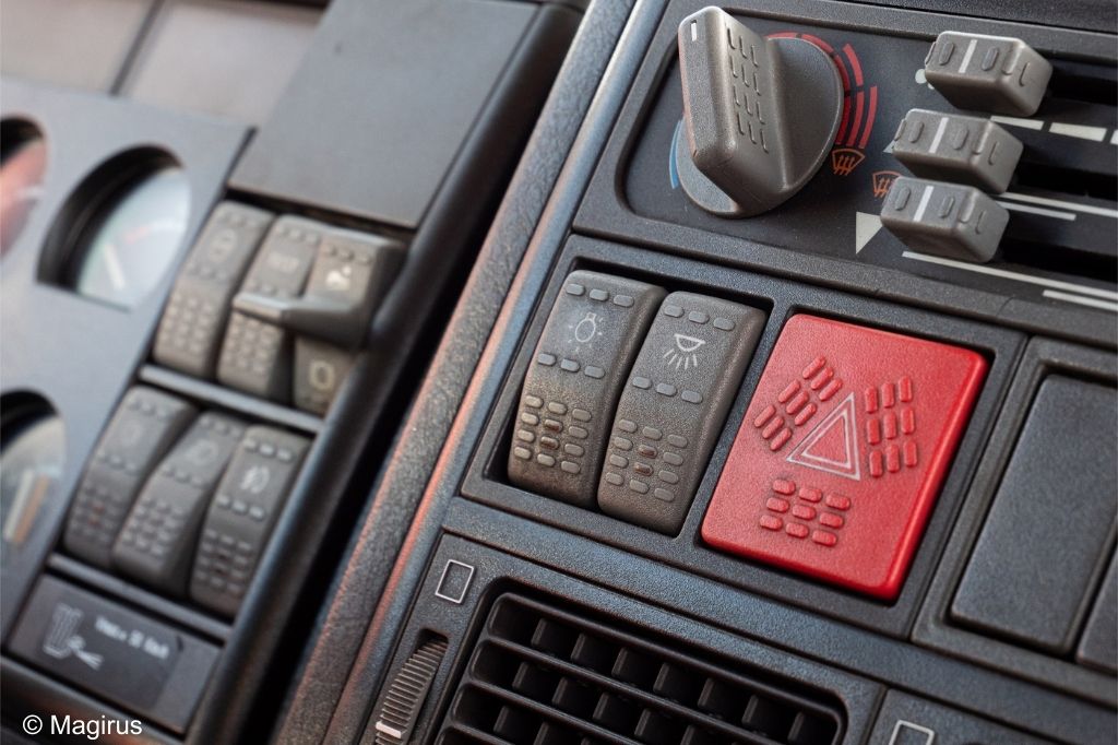 Kipp-Lichtschalter in der Mitte des Armaturenbretts im Fahrerhaus (Bild: Magirus)