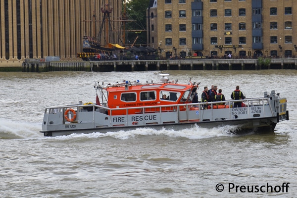 Über zwei fernsteuerbare Monitore auf dem Deckshaus können bis zu 2.500 Liter Wasser pro Minute abgegeben werden. Ein hydraulischer Kran am Bug unterstützt in Verbindung mit einem Jason’s Cradle-Rettungsnetz die Rettung von Personen aus dem Wasser. Sie erreichen eine Höchstgeschwindigkeit von 45 Knoten (etwa 83 km/h) und operieren zwischen Hampton Court und Dartfort Crossing. Sie werden durch einen Officer und vier Feuerwehrleute besetzt. Sie arbeiten auf der Themse mit der Wasserschutzpolizei sowie der Royal National Lifeboat Institution (RNLI, eine britische Seenotrettungsorganisation, die auch Rettungsboote auf der Themse betreibt) zusammen.