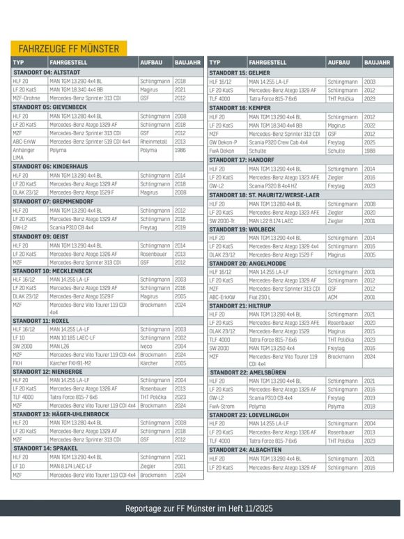 Die Tabelle mit allen Fahrzeugen der Feuerwehr Münster findest du hier: