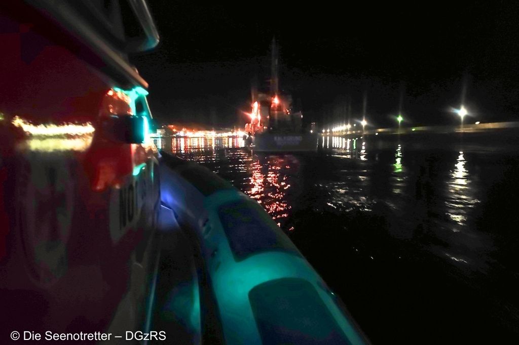 Beim Festmachen unterstützten die Seenotretter zusätzlich mit ihrem Tochterboot Notarius. Zur Einsatzzeit herrschten schwacher, umlaufender Wind und weniger als ein halber Meter Seegang.