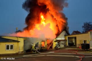 Westercelle (NI) – Meterhohe Flammen schlagen um 3 Uhr aus einem 300 Quadratmeter großen Gebäude in Westercelle, einem Stadtteil der nie …