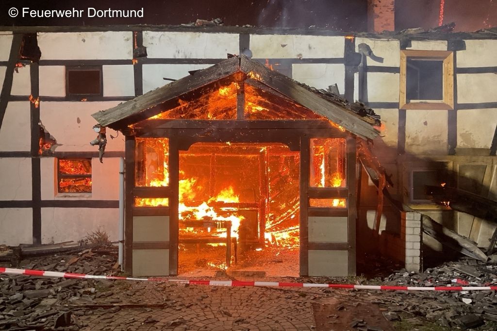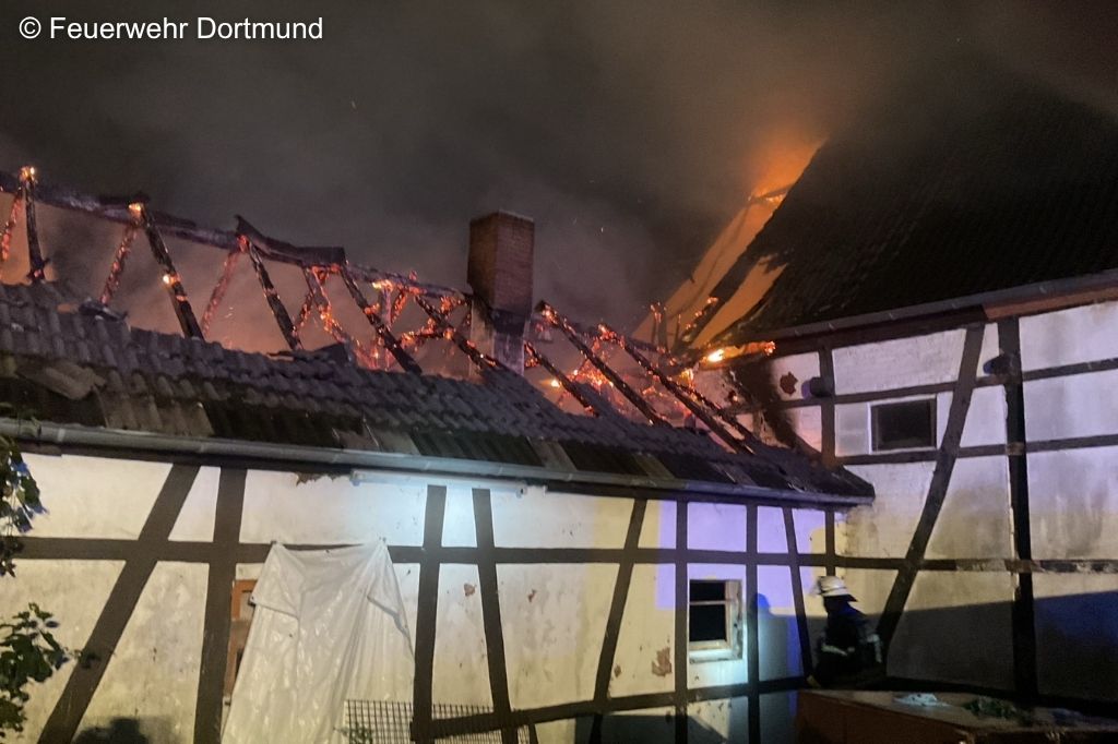 Dortmund (NW) – In den frühen Morgenstunden brach auf einem landwirtschaftlichen Anwesen im Dortmunder Stadtteil Brechten ein Feuer aus. Ein Anbau stand beim Eintreffen der Feuerwehr in Vollbrand, die Flammen griffen bereits auf das Wohnhaus über.