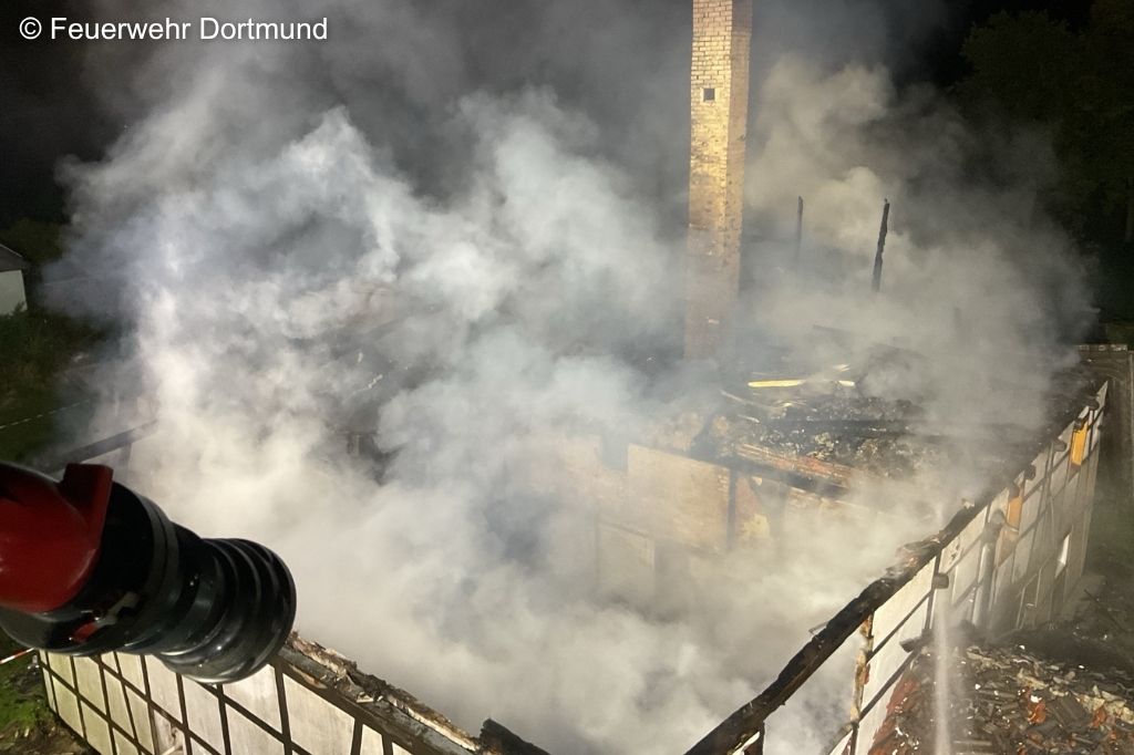 Nur wenige Stunden nach dem offiziellen Einsatzende musste die Feuerwehr Dortmund in der Nacht erneut zu dem landwirtschaftlichen Anwesen in Brechten ausrücken. Gegen 3:56 Uhr meldeten Anwohner wieder Flammen an dem Objekt, das am Vortag bereits gebrannt hatte.