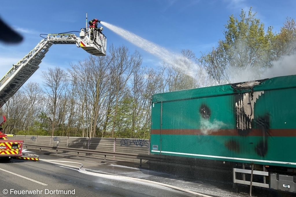 Feuerwehr löscht Brand auf Lkw-Auflieger bei Dortmund