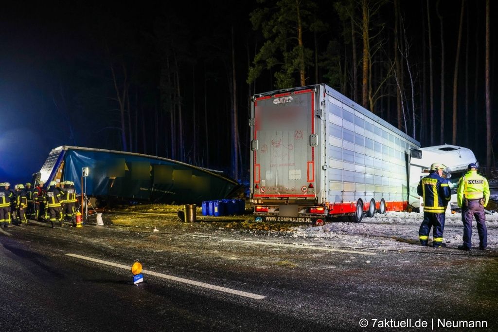 Um 2:15 Uhr verunglückten auf dem nördlichen Berliner Ring zwei Sattelzüge in Fahrtrichtung Kreuz Oranienburg. Nach Angaben der Autobahnpolizei Walsleben kamen die Fahrzeuge nacheinander nach rechts von der Fahrbahn ab und blieben im Straßengraben stehen, etwa 50 Meter voneinander entfernt.