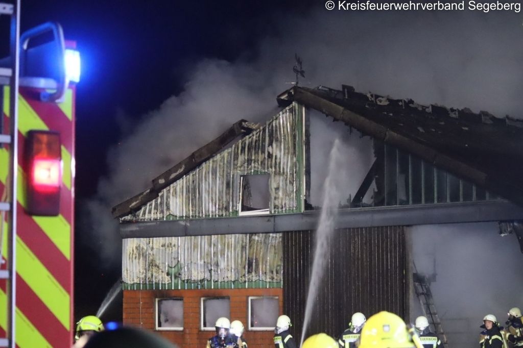 Die Feuerwehr Sievershütten kam daraufhin hinzu. Der Einsatzleiter forderte später weitere Atemschutzgeräteträger an und erhöhte das Stichwort auf „FEU 3“. Beim Eintreffen aller ersten Kräfte stand der Kuhstall bereits in Vollbrand. Die Feuerwehrleute begannen sofort mit der Rettung der Tiere, nachdem Bewohner den Stall geöffnet hatten. Dadurch gelang es, alle 72 Rinder aus dem Gefahrenbereich zu bringen.