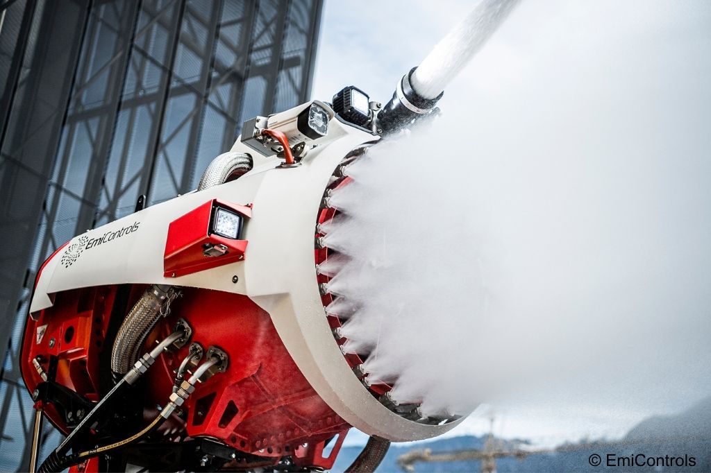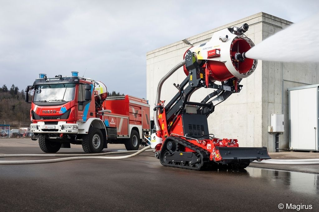 Magirus arbeitet seit mehr als einem Jahrzehnt mit der EmiControls GmbH aus Bozen zusammen. EmiControls zählt zu den Herstellern von Wassernebelturbinen und modularen Robotik-Lösungen. Ein Ergebnis der Zusammenarbeit ist der AirCore TAF, ein multifunktionaler Roboter auf Basis von Wassernebeltechnologie.