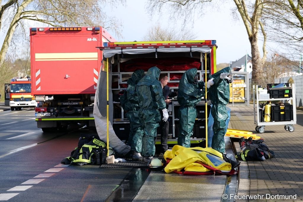 Dortmund (NW) – Nach dem Austritt von Natriumcyanid in einer Industriehalle hat die Feuerwehr in Dortmund elf betroffene Personen erfasst. Drei von ihnen kamen zur weiteren Behandlung in Krankenhäuser. Neben den Arbeitern dekontaminierten die Einsatzkräfte auch eigene Schutzkleidung, um eine Verschleppung des Gefahrstoffs zu verhindern.