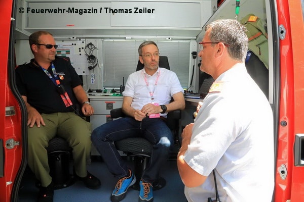 Hohen Besuch beim Führungsstab am Rennsonntag: Österreichs Innenminister Herbert Kickl schaute vorm Rennstart kurz vorbei und informierte sich über die Arbeit der Freiwilligen Feuerwehren. Foto: Thomas Zeiler