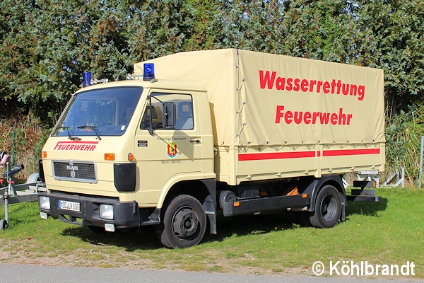 Der GW-Wassergefahren der FF Waren stammt vom Katastrophenschutz. Daher auch die ungewöhnliche Farbe. Der MAN VW 8.150 stammt aus dem Jahr 1992. (Bild: Köhlbrandt)