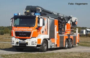 Freiburg (BW) – Die weltweit erste Hubarbeitsbühne des Typs B 45 FA 2.0 von Rosenbauer stellte die BF Freiburg im Spätsommer 2020 in den Dienst. Das Kürzel FA in der Fahrzeugbezeichnung steht für First Attack. Es befindet sich also die Löschtechnik für einen Erstangriff an Bord. Die midship eingebaute Feuerlöschkreiselpumpe des Typs N55 leistet bis zu 5.500 Liter pro Minute.