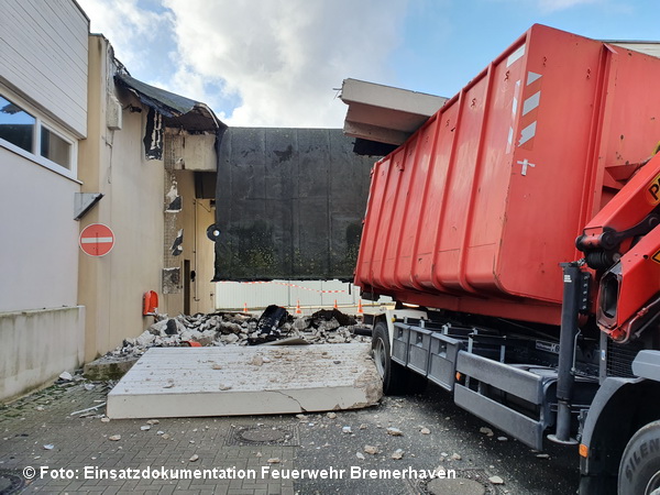Beim Durchfahren einer Unterführung auf dem Gelände der Zentralen Feuerwache in Bremerhaven stürzte das Betondach ein. Foto: Einsatzdokumentation Feuerwehr Bremerhaven