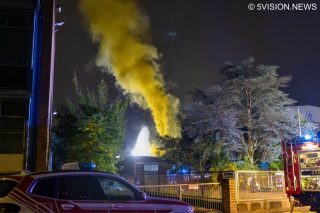 Nach Reporterangaben brennen mehrere Gebäude in dem Industriekomplex auf der Müggenburger Straße. Aufgrund der Explosionen können sich die Einsatzkräfte dem Feuer nicht nähern. “Zurzeit warten wir auf die Flughafenfeuerwehr, wir brauchen Wurfweite”, sagte Hartmann dem Feuerwehr-Magazin.