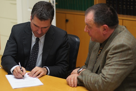 Management Buy Out für das Werk in Görlitz: Benedetti und Andreas Neu (v.l.n.r) bei der Vertragsunterzeichnung. Foto: Iveco Magirus