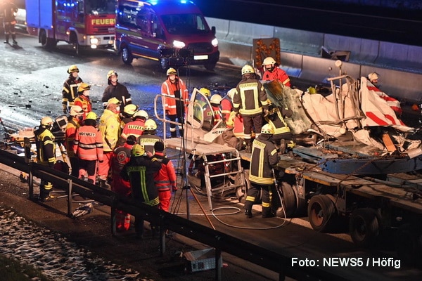 Die Feuerwehrleute schnitten die Leiche des Fahrers mit hydraulischem Rettungsgerät aus dem Vito und übergaben sie an einen Bestatter. Außerdem halfen sie bei der Reinigung der Unfallstelle. Die A3 war für einige Stunden gesperrt.
