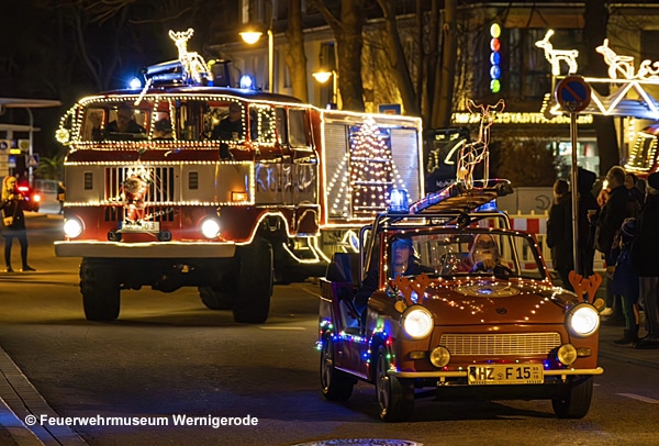 Wernigerode (ST) – Am Samstag veranstaltete der Förderverein des Feuerwehrmuseums Wernigerode erneut die beliebte Lichterfahrt, die seit 2018 fester Bestandteil der Vorweihnachtszeit ist. Rund 30 festlich geschmückte Fahrzeuge, darunter historische und aktuelle Löschfahrzeuge, nahmen an der Fahrt durch die Stadt teil und sorgten für große Begeisterung bei den zahlreichen Zuschauern.