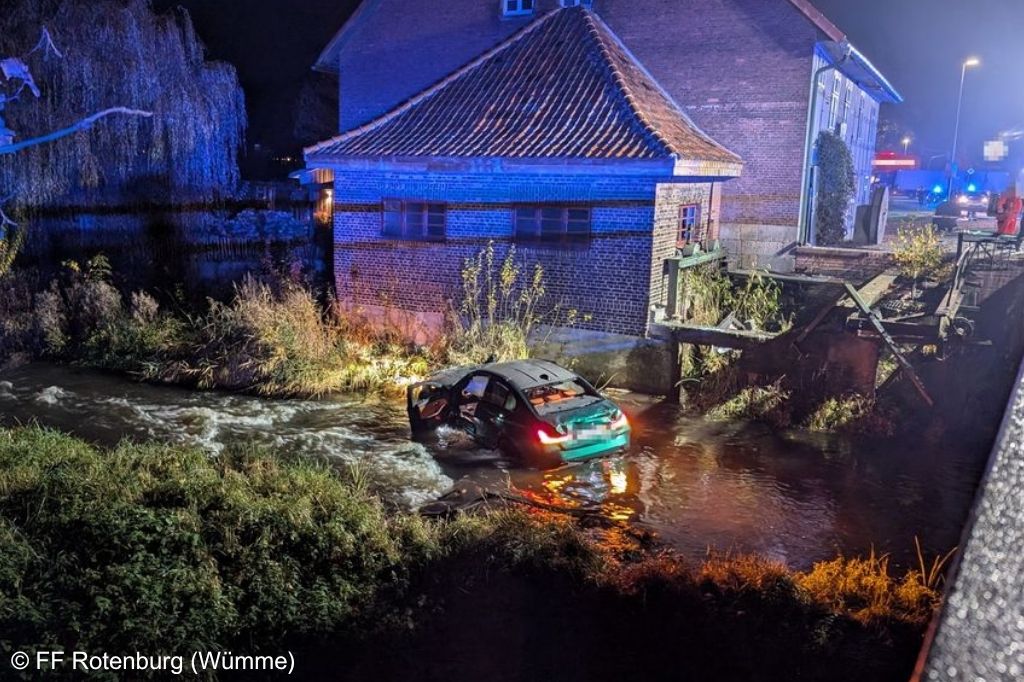 Rotenburg (Wümme, NI) – Ein Pkw ist in der Nacht zu Freitag in Rotenburg (Wümme) von einer Brücke in die Wiedau gestürzt. Die Feuerwehr verhinderte eine Gewässerverunreinigung.