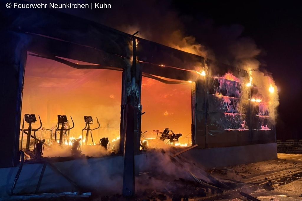 Wellesweiler (SL) – Ein Großbrand hat am Sonntagabend ein Fitnessstudio in Wellesweiler, Kreis Neunkirchen, zerstört. Alle 18 im Gebäude befindlichen Menschen konnten es unverletzt verlassen. Die Feuerwehr verhinderte ein Übergreifen auf ein direkt angebautes Bürogebäude.