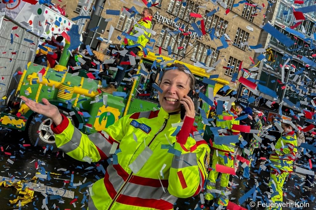 Kräfte der Feuerwehr Köln und Partnerorganisationen sicherten den Rosenmontag entlang der Zugstrecke ab. (Bild: Feuerwehr Köln)