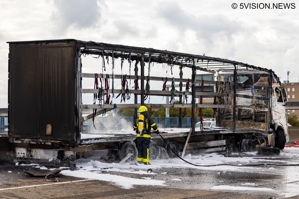 Frankfurt (HE) – Ein Lkw ist bei Frankfurt verunglückt und in Vollbrand geraten. Die Feuerwehr war stundenlang im Einsatz, die Autobahn blieb bis in den Abend hinein voll gesperrt.