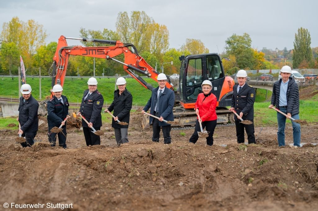 Nachdem der Stuttgarter Gemeinderat im Juli den Neubau beschlossen hatte, haben die Arbeiten zur Erschließung des Baugrundstücks bereits begonnen. Zum offiziellen Baubeginn fand nun der Spatenstich im Beisein von Bürgermeister Dr. Clemens Maier, Feuerwehrkommandant Dr. Georg Belge und dem Leiter des Hochbauamtes, Peter Holzer, statt.