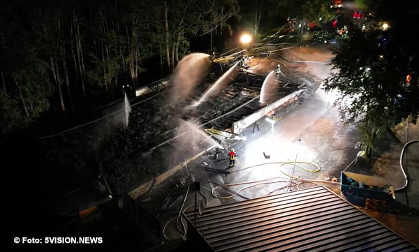 Seeheim-Jugenheim (HE) – Am Sonntagabend zerstörte ein Feuer die Sporthalle in Ober-Beerbach, einem Ortsteil der Gemeinde Seeheim-Jugenheim (Kreis Darmstadt-Dieburg). Weil zeitgleich auch ein einige Meter entfernt stehender Abfallcontainer brannte, liegt der Verdacht der Brandstiftung nahe. Die Ermittlungen laufen.