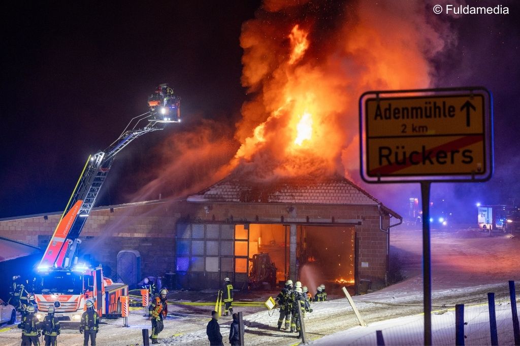 Flieden (HE) – Bei einem Großbrand einer Lager- beziehungsweise Werkstatthalle im Ortsteil Rückers, Kreis Fulda, ist ein 27-jähriger Feuerwehrmann aus der Gemeinde Flieden ums Leben gekommen. Der Mann erlitt während des Einsatzes einen medizinischen Notfall und verstarb später im Krankenhaus.