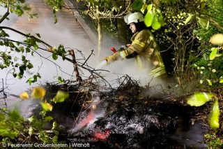 In Lutzhorn (SH, Kreis Pinneberg) brach ein Feuer in einer Reithalle aus. Als die ersten Löschfahrzeuge eintrafen, brannte ein Strohlager in voller Ausdehnung. In der Reithalle befanden sich noch 15 Pferde, die von den Kameraden der Feuerwehr auf die benachbarte Koppel getrieben worden. Parallel bauten Kräfte den Löschangriff mit insgesamt neun Strahlrohren auf. Dadurch konnte eine Brandausbreitung auf weitere Gebäudeteile verhindert werden.