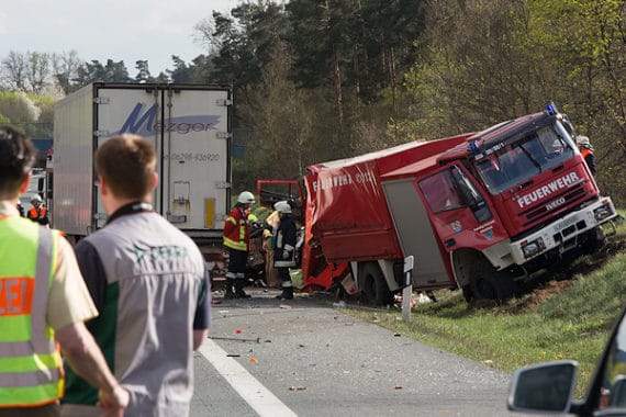 Schnaittach (BY) – Bei einem schweren Unfall auf der A 9 sind am Dienstagnachmittag ein Feuerwehrmann und ein Lkw-Fahrer ums Leben gekommen. Ein Lastwagen war gegen ein Feuerwehrfahrzeug geprallt, das eine Unfallstelle absichern sollte. Ein weiterer Feuerwehrmann erlitt schwere Verletzungen.