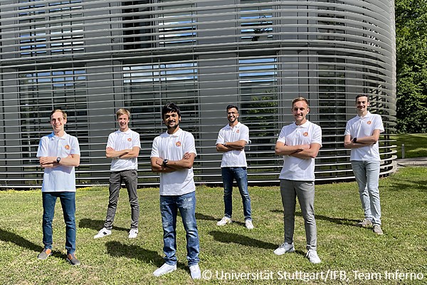 Team „Inferno“ (v. l.): Nicolas Mandry, Hannes Kahlo, Prishit Modi, Günay Can, Johannes Ritter, Benjamin Knoblauch. Foto: Universität Stuttgart/IFB, Team Inferno