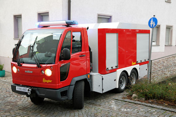 Giengen/Brenz (BW) – Mit 1,70 Metern ist es so breit wie ein typischer Kleinwagen, mit 2,50 Meter Höhe passt er auch durch viele niedrige Durchfahrten. Und trotz seiner drei Achsen ist er beinahe genauso wendig: Die Fire Ant (zu deutsch: Feuer-Ameise) ist ein neu entwickeltes Kleinlöschfahrzeug aus dem Hause Ziegler, welches vor allem in Fußgängerzonen, engen Innenstadtgassen, Ausstellungsgeländen, Industriebetrieben oder im Bergbau zum Einsatz kommen kann. Die Basis bildet der Multicar Fumo 6×4, der es ermöglicht, 2.500 Liter Wasser sowie die komplette feuerwehrtechnische Beladung eines TLF 2000 nach DIN 14530-18 aufzunehmen.